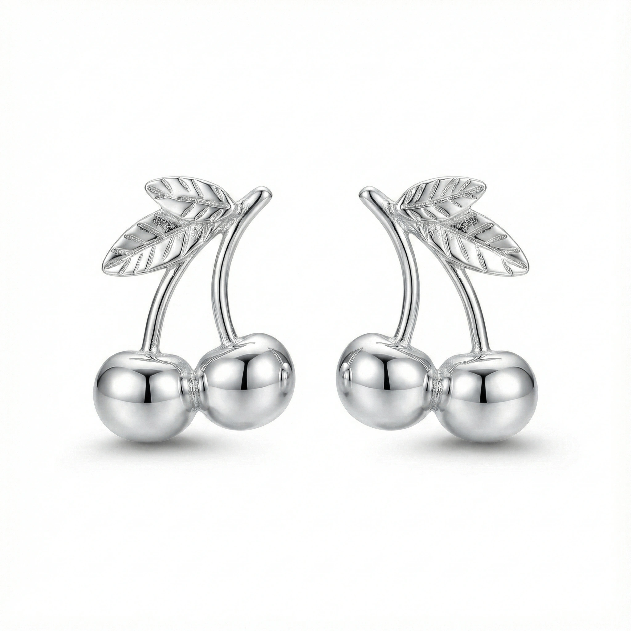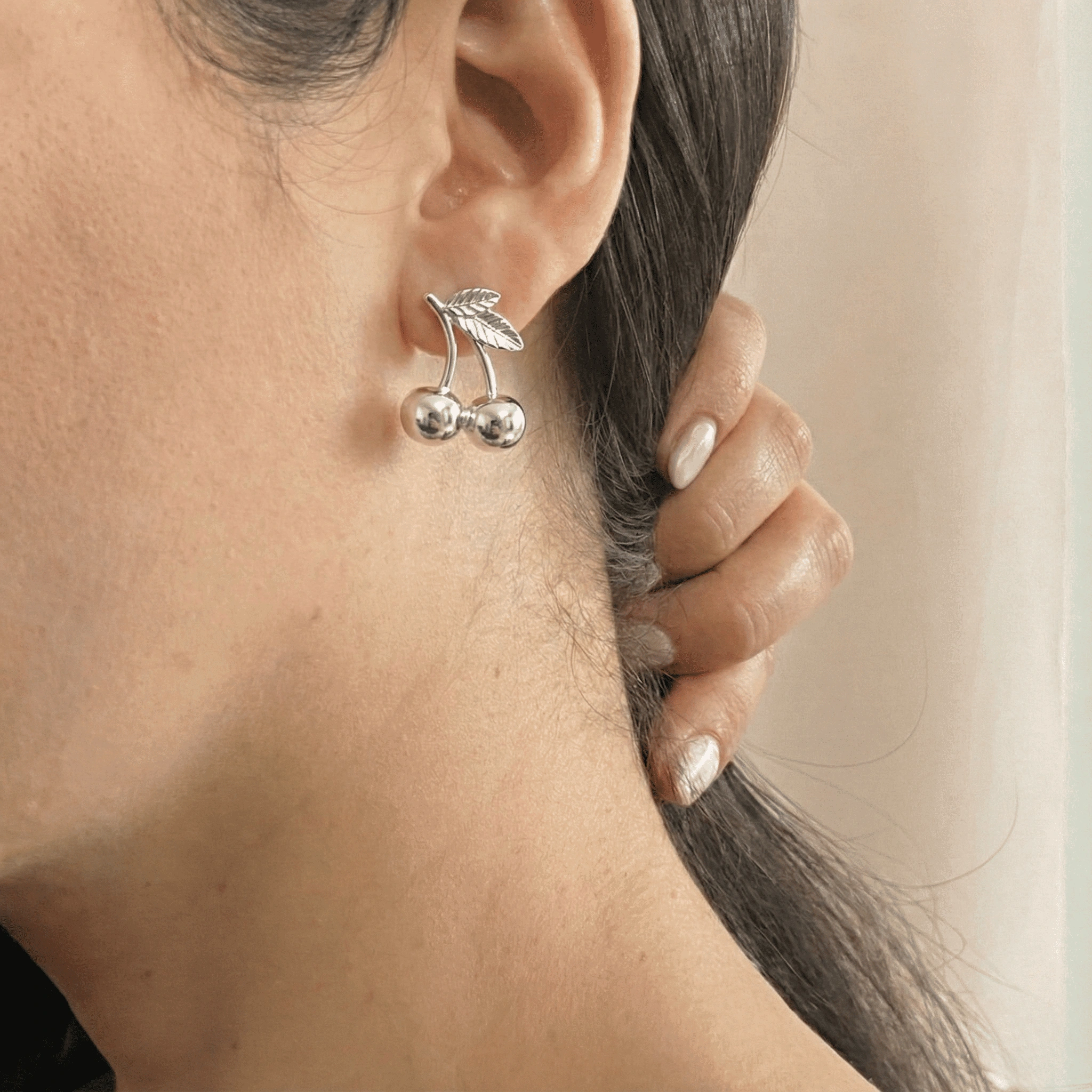 Aretes en plata de ley 950 hechos a mano en forma de cereza.