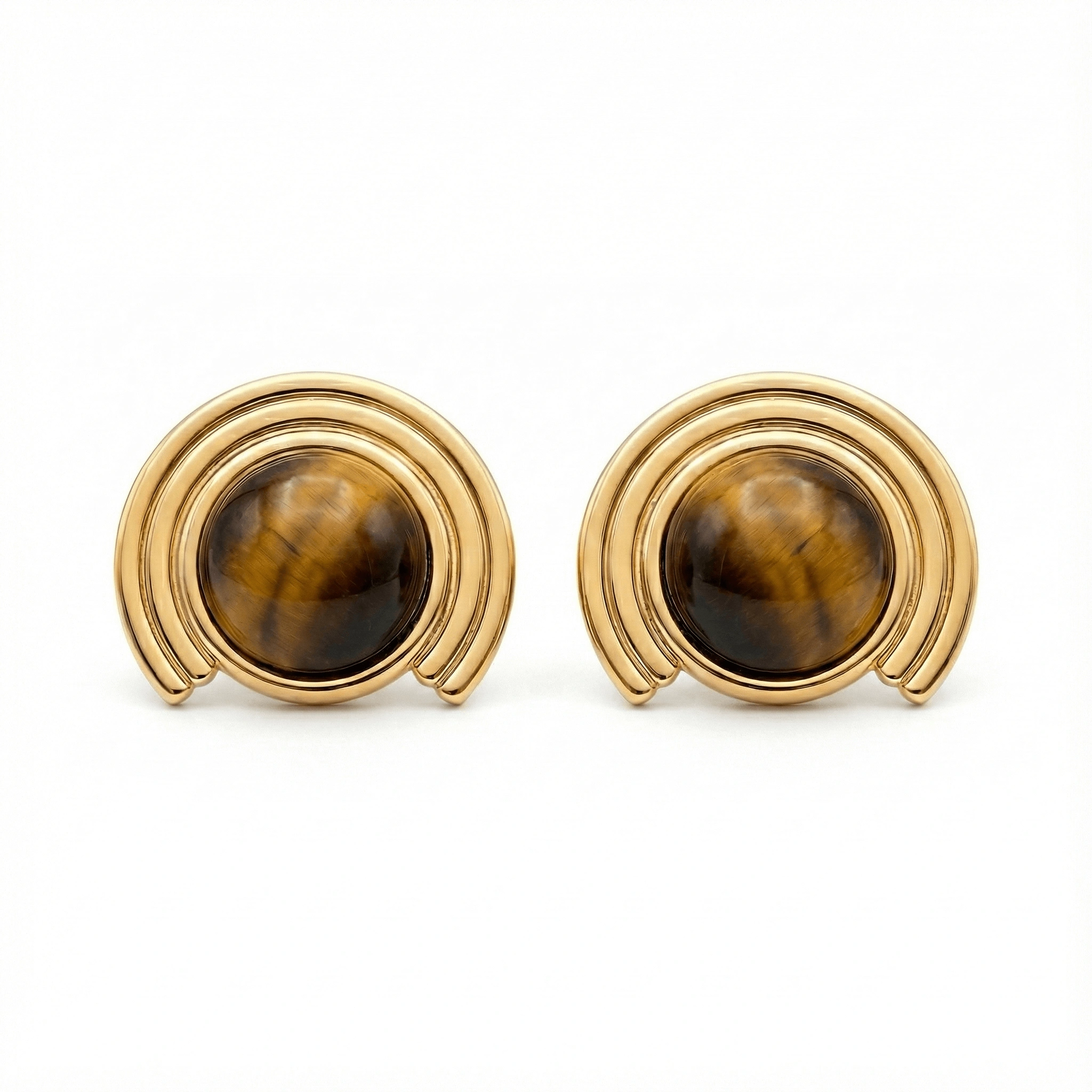 Aretes en acero inoxidable 316l enchapado en oro 18k con piedra central ojo de tigre