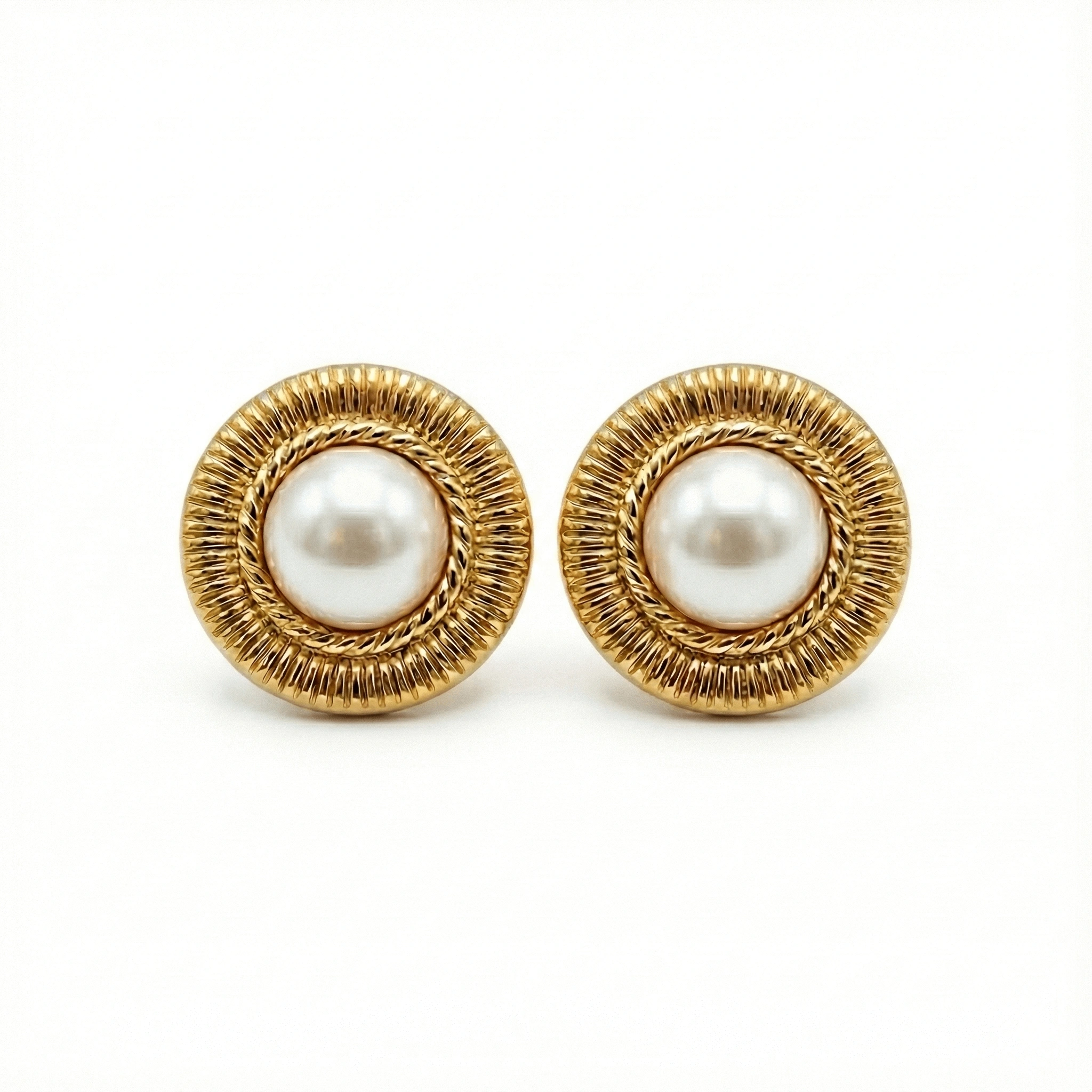 Aretes en acero inoxidable 316l enchapado en oro 18k con perla central checa color blanco