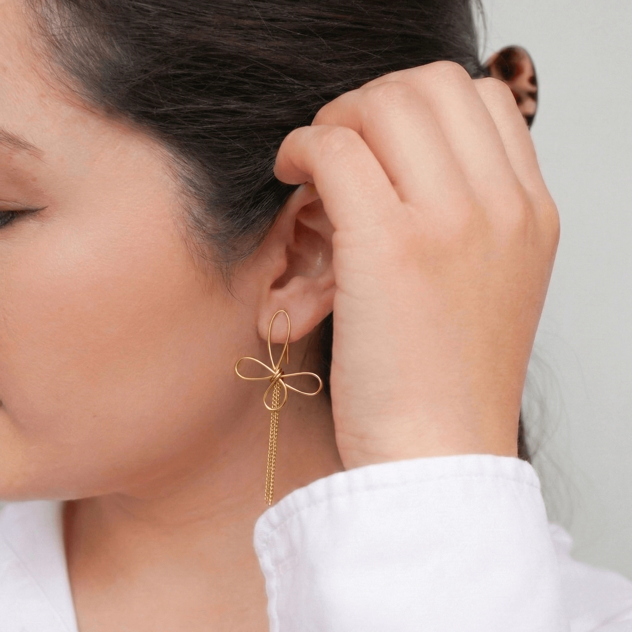 Aretes pegados en acero inoxidable 316L con enchape de oro 18k.