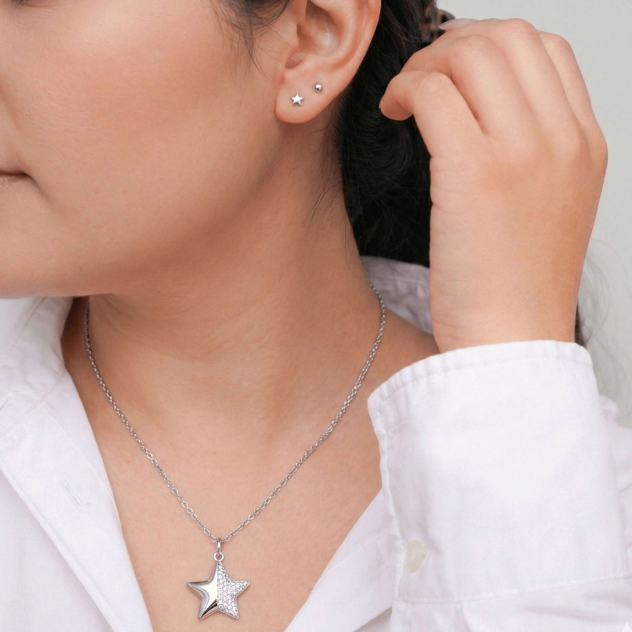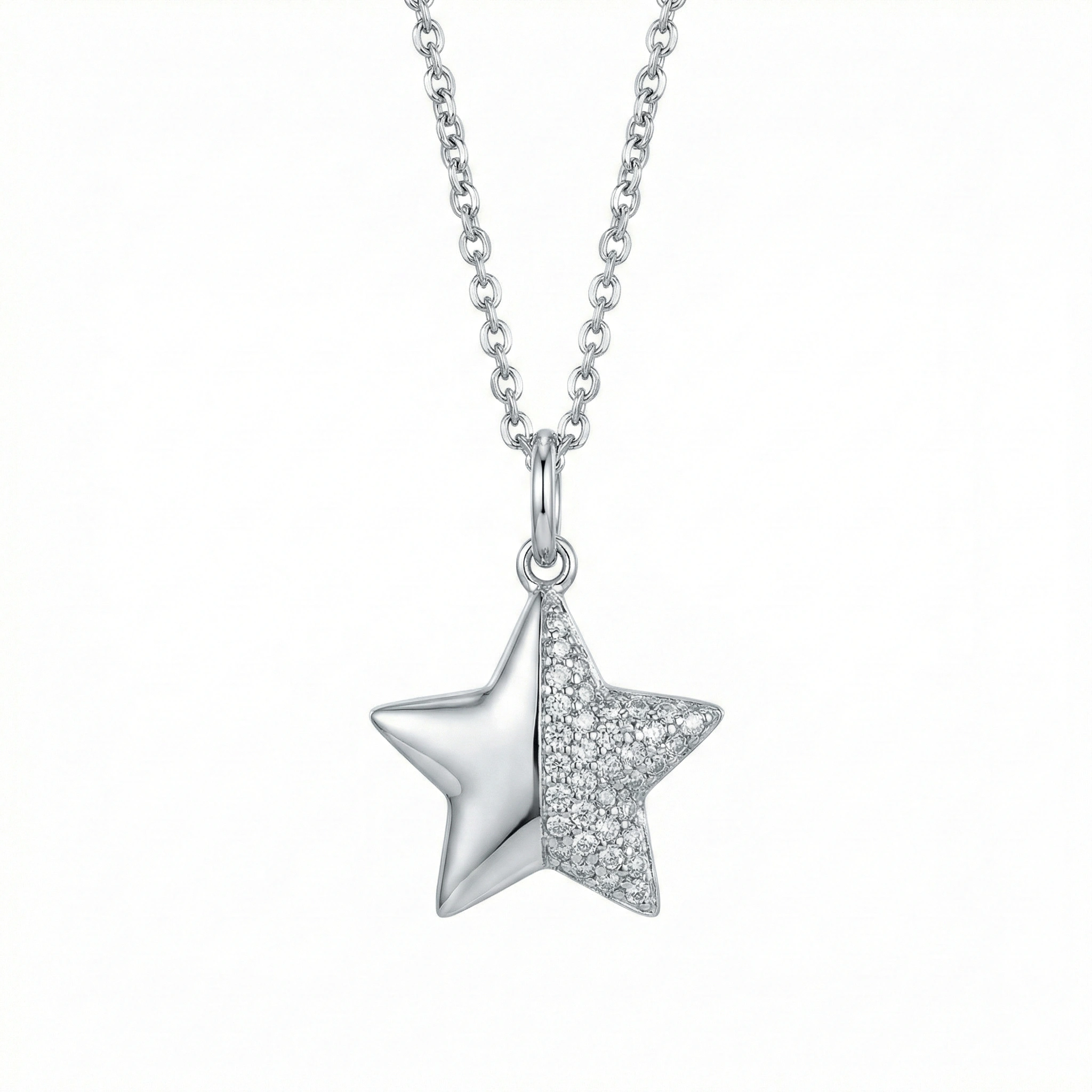 Collar en acero inoxidable 316L con enchape de rodio y circones.