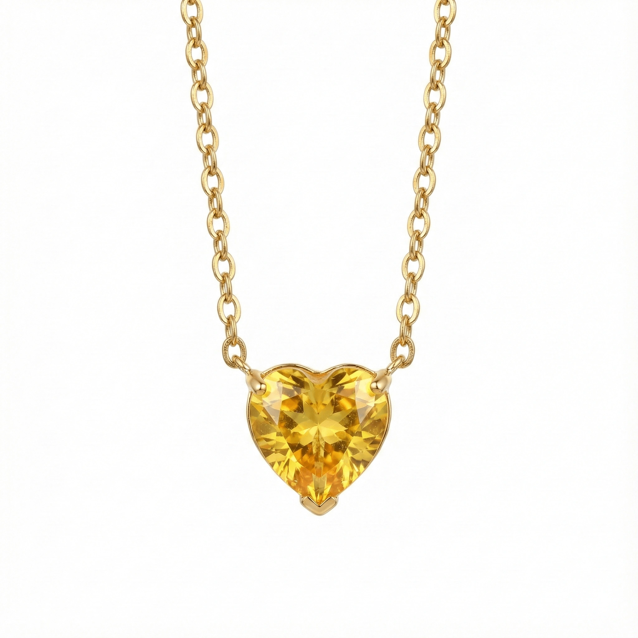 Collar en acero 316L resistente al agua con enchape en oro 18k. con zircón central en forma de corazón tonalidad amarilla.