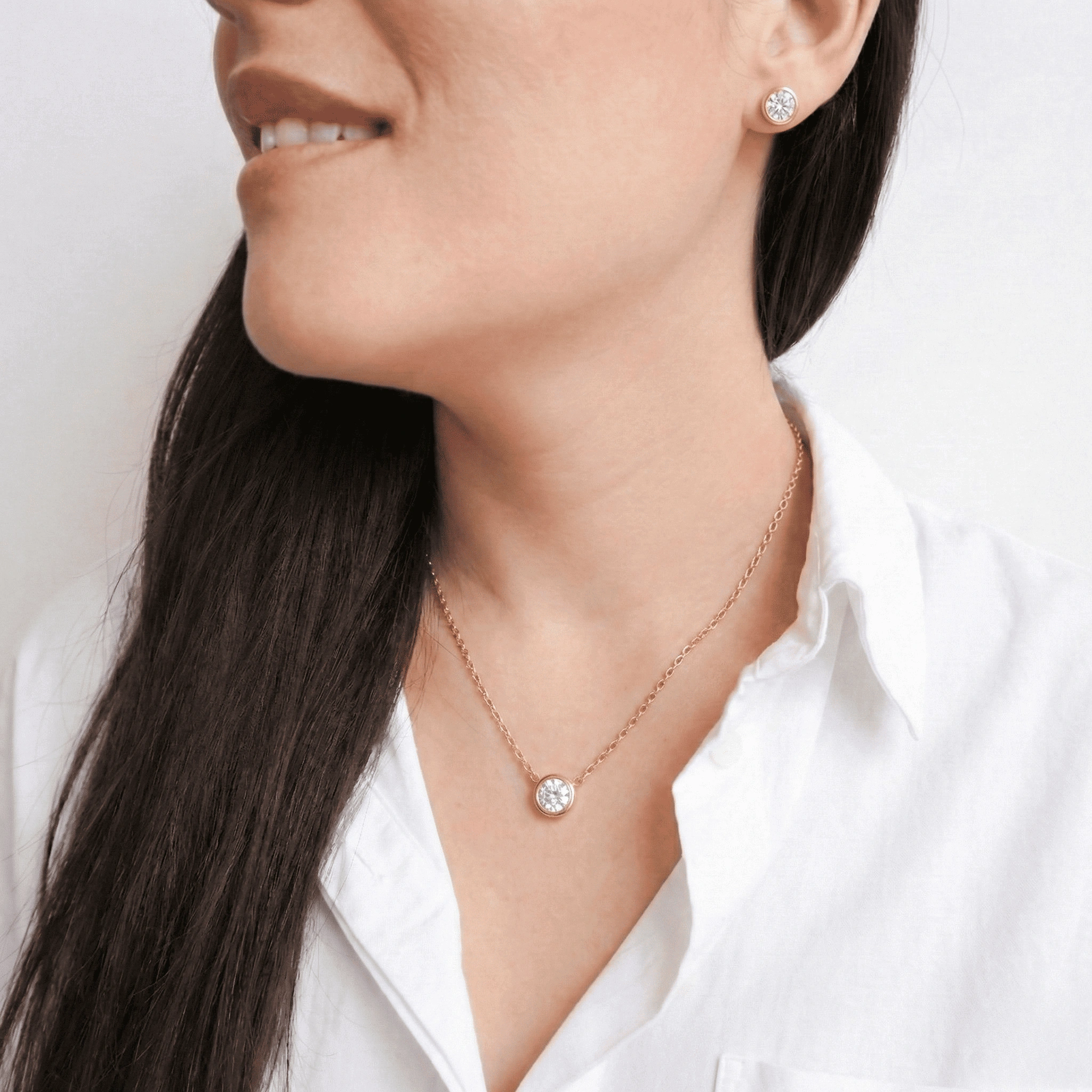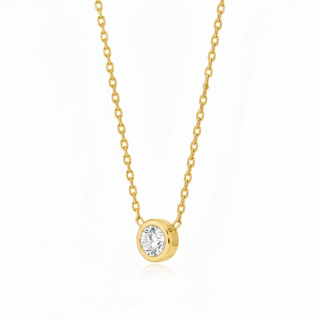 Collar en acero inoxidable con circón central punto de luz.