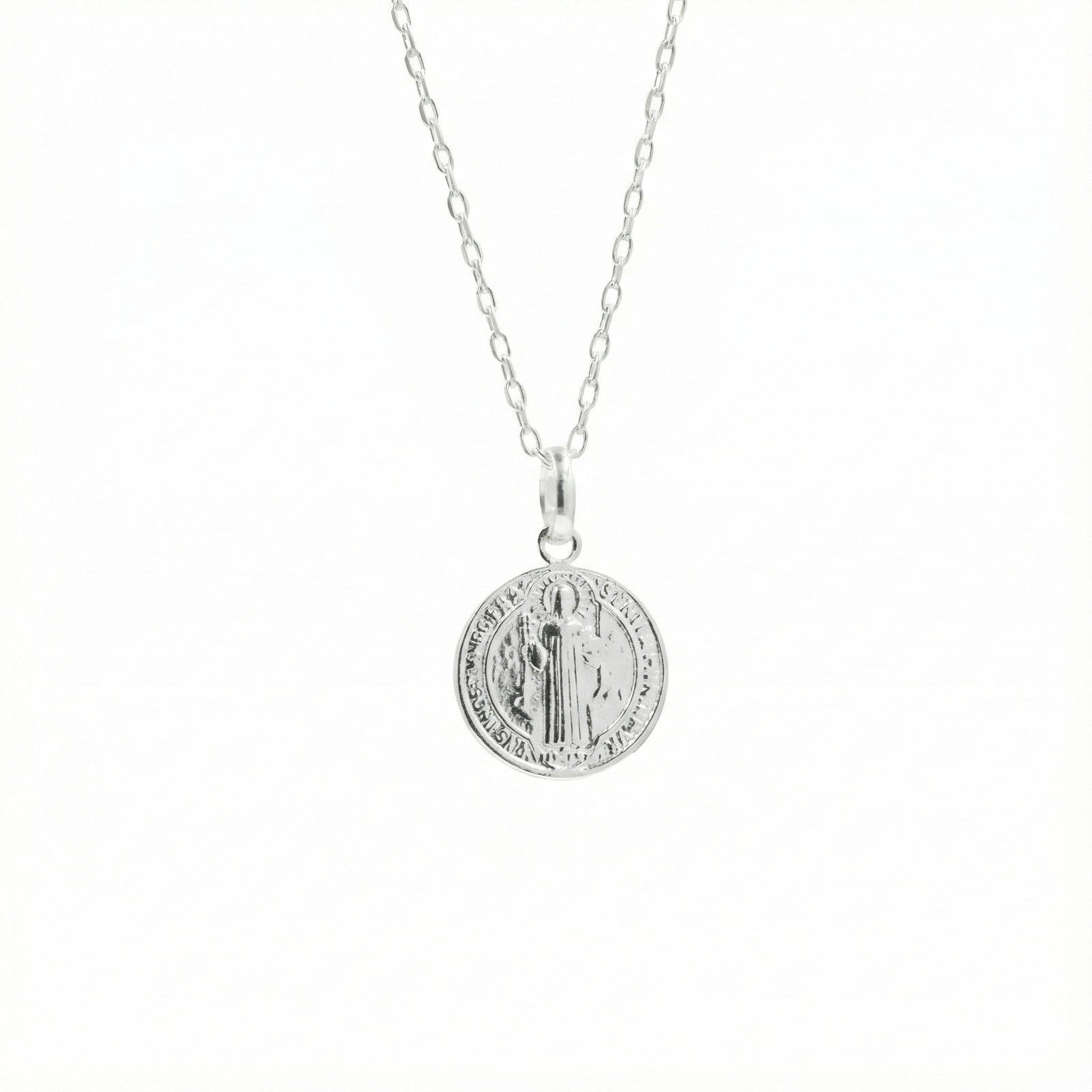 Dije+ cadena en plata 925 , dije central imagen de San Benito