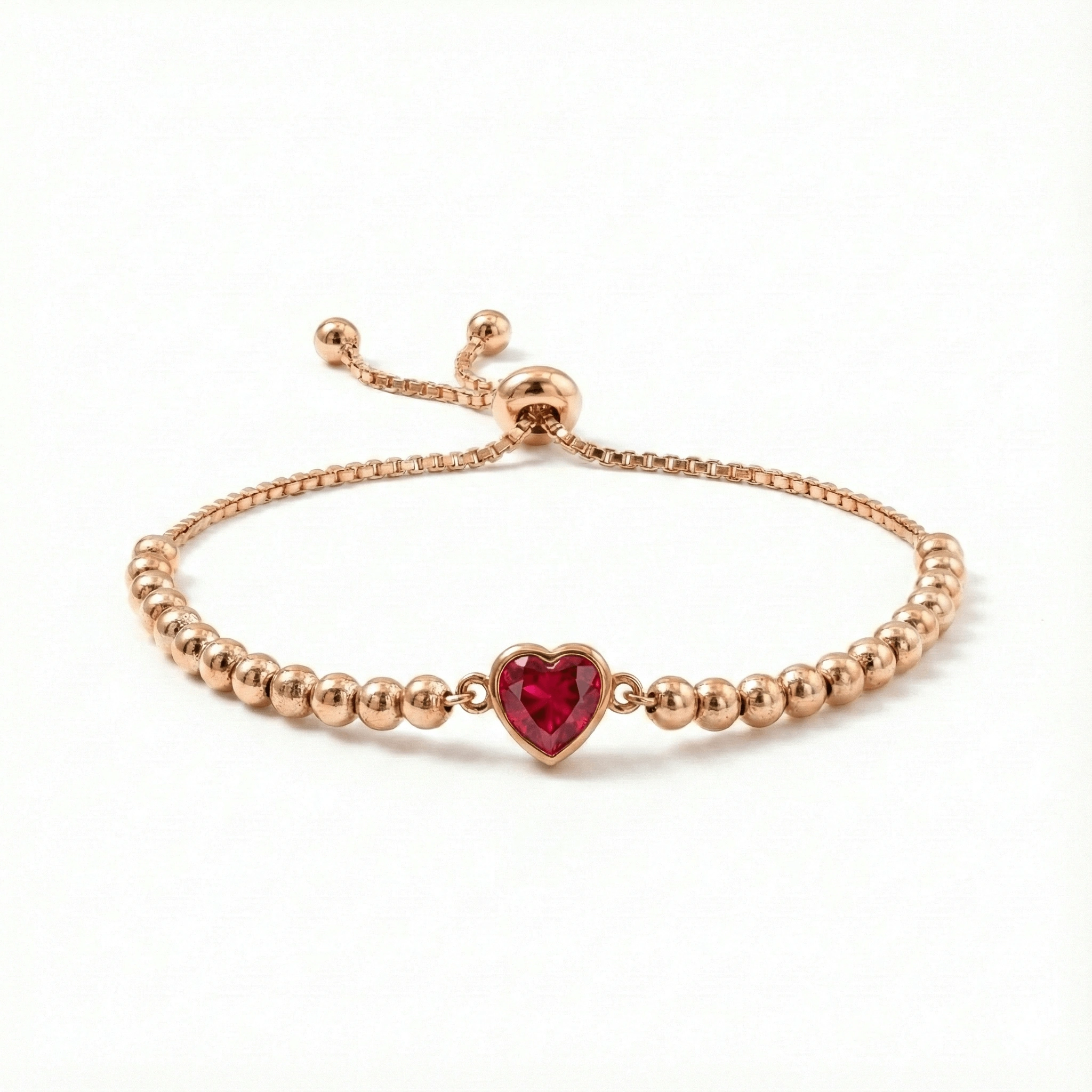 Pulsera de acero 316L inoxidable waterproof con enchape en oro 18k con circón en forma de corazón tonalidad rubí